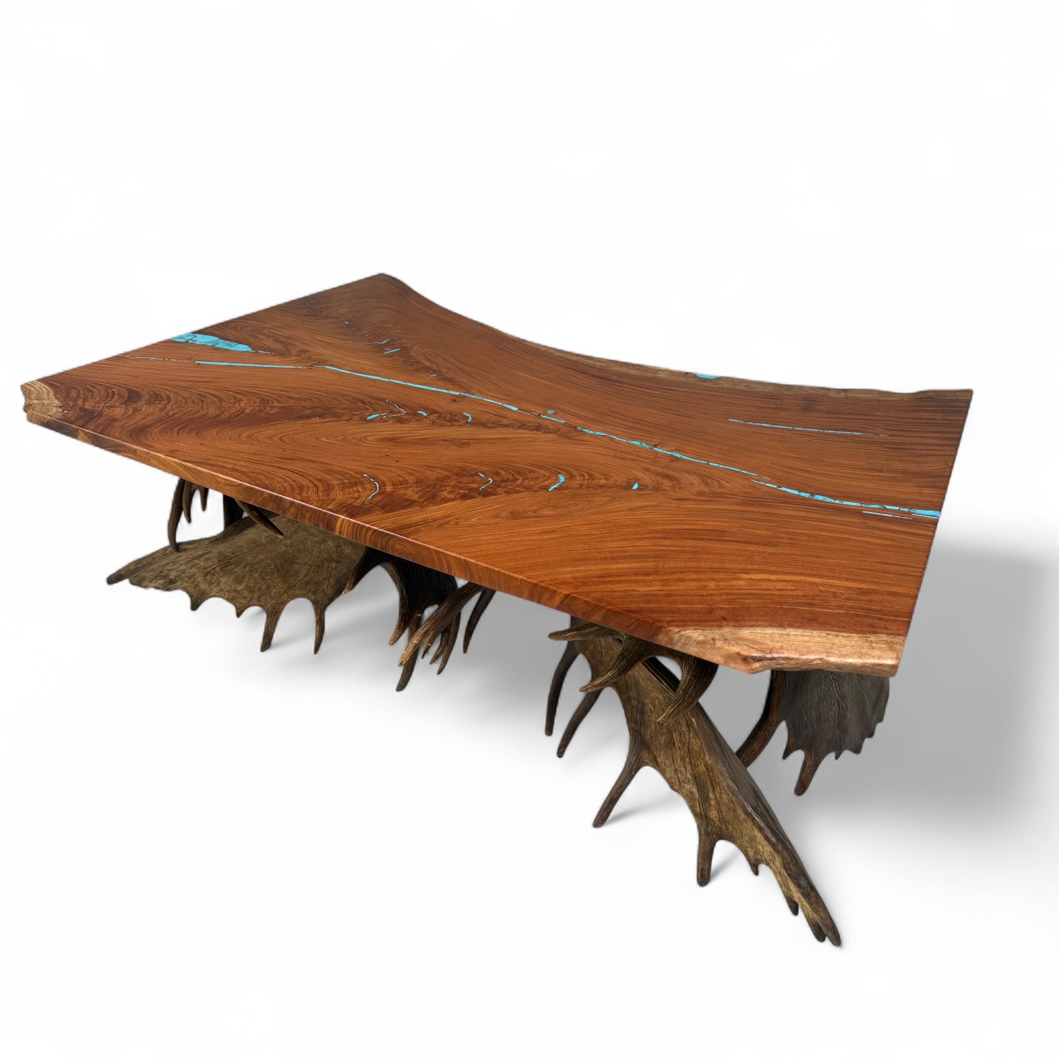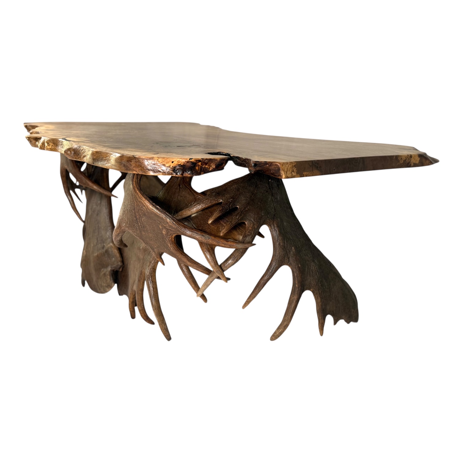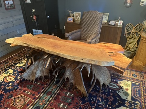 Our moose antler furniture collection emphasizes bold, sculptural design. Explore moose antler tables, dining tables, desks, chairs, coffee tables, and high-top tables, all crafted to highlight the dramatic scale of moose antlers. Custom moose antler poker tables and black jack tables are available for one-of-a-kind entertainment spaces.