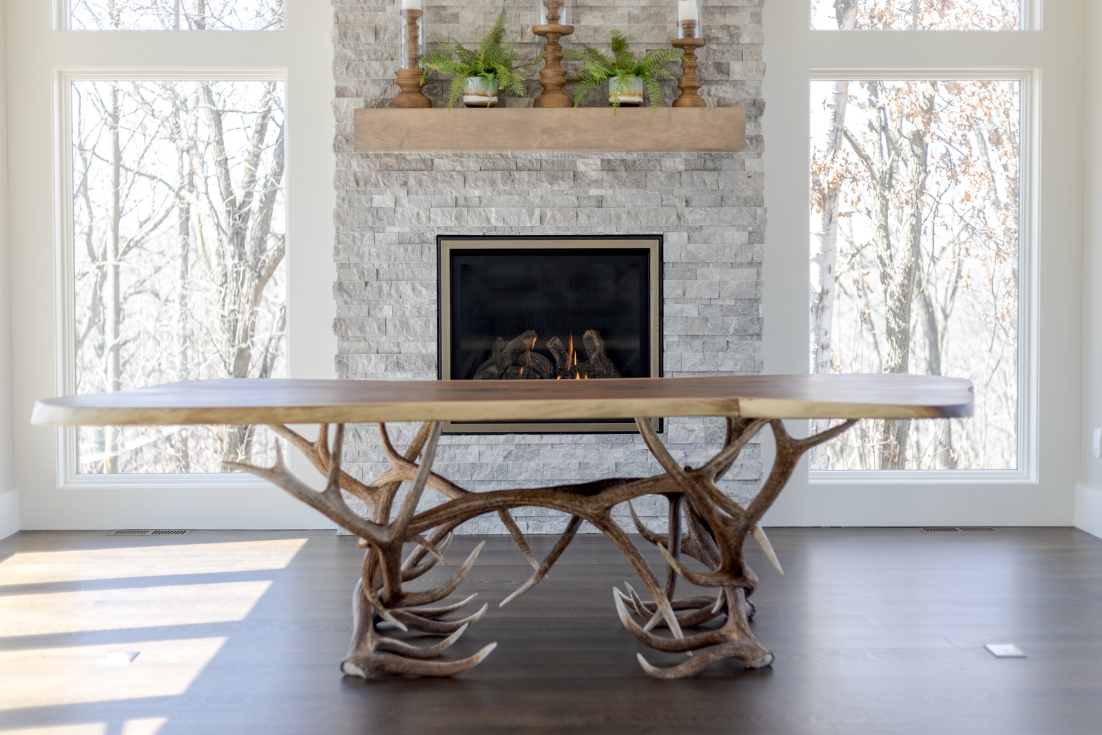 Explore one-of-a-kind pieces that blend artistry, natural form, and function. Each piece is a work of art—from deer antler tables to custom game tables.